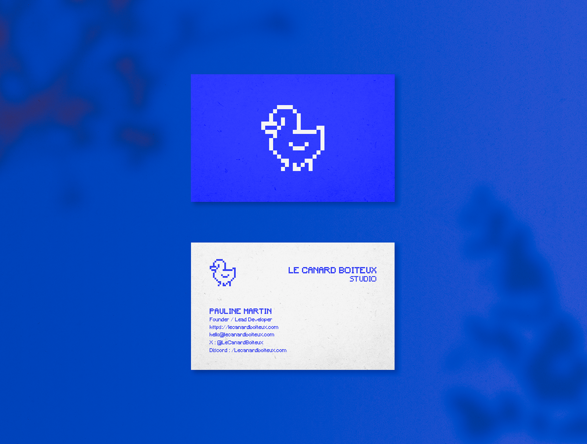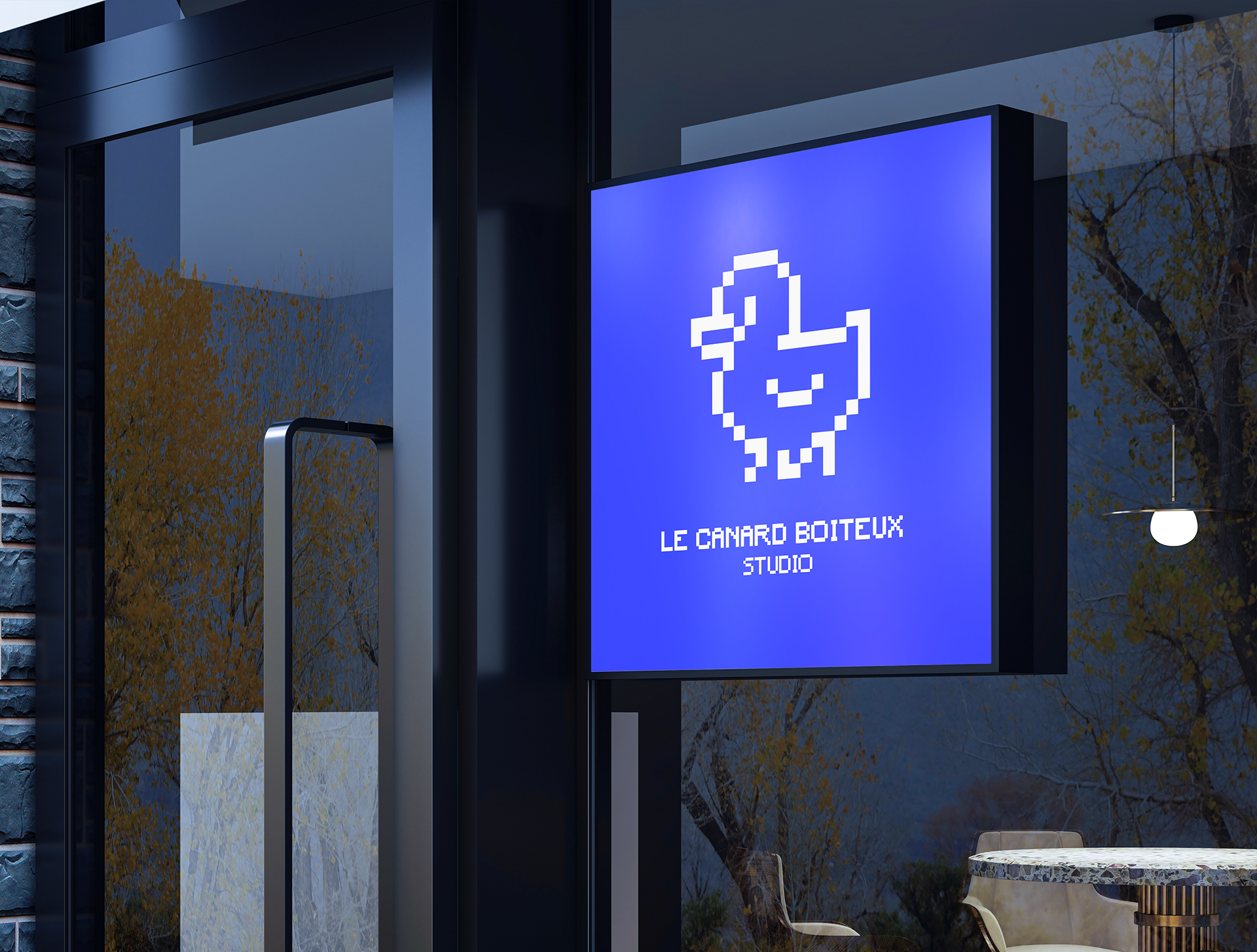 Challenge & Artistic Direction: To design a complete and relevant visual identity for a fictional video game studio. The core challenge was to translate the heritage of retrogaming (Pixel Art) while justifying the unconventional name "Le Canard Boiteux" with a coherent and bold visual narrative.